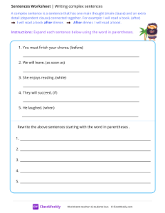 Printable Complex Sentences Worksheets