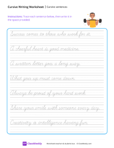 This cursive writing worksheet helps students develop their handwriting skills and encourages proper letter formation & writing fluency. Worksheet instructions: Trace each sentence, then write it in the provided space.