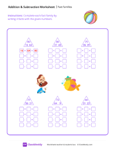 Worksheet instructions: Complete each fact family by writing 4 facts with the given numbers.