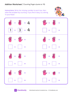 Kindergarten Counting Fingers Worksheets and Activities