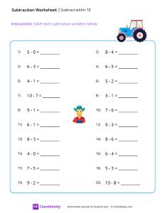 Subtract within 10 - Tractor