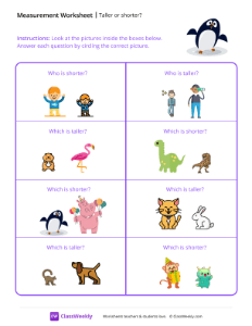 Worksheet instructions: Use a penny to measure the height of each picture.
