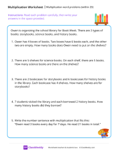 Multiplication word problems (within 25) - Books