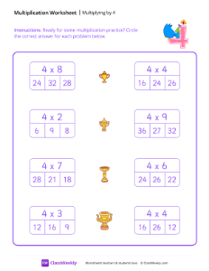 Worksheet instructions: Ready for some multiplication practice? Circle the correct answer for each problem.