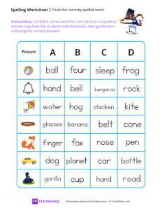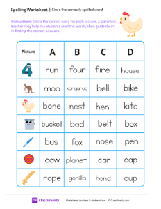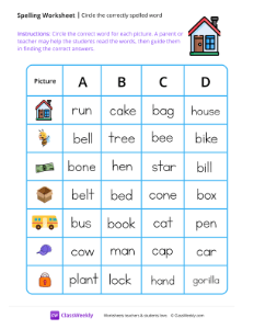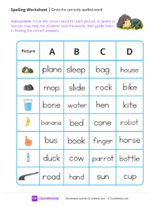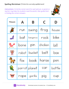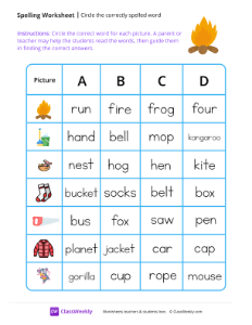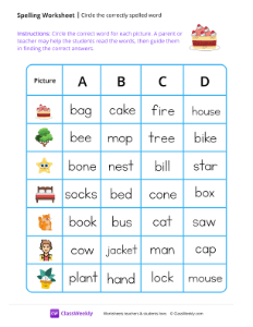 Worksheet instructions: Circle the correct word for each picture. A parent or teacher may help the students read the words, then guide them in finding the correct answers.