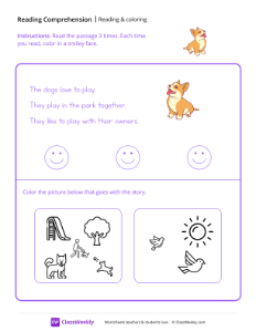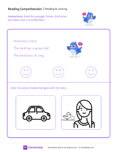 Worksheet instructions: Read the passage 3 times. Each time you read, color in a smiley face. Then, color the picture that goes with the story.