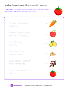 Worksheet instructions: Trace each sentence, read it aloud, and then draw a line to match the sentence to the correct picture.
