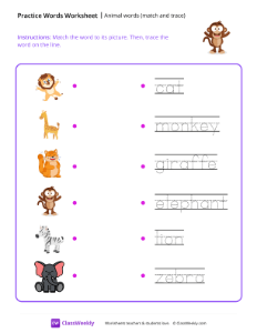 Animal words (match and trace) - Monkey