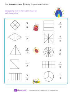 Coloring shapes to make fractions - Bugs
