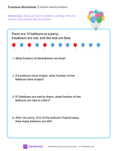 Fraction word problems - Balloons
