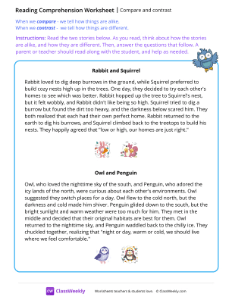 When we compare - we tell how things are alike. When we contrast - we tell how things are different. Worksheet instructions: Read the two stories below. As you read, think about how the stories are alike, and how they are different. Then, answer the questions that follow. A parent or teacher should read along with the student, and help as needed.
