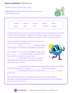 A noun is a person, place, thing or idea. Worksheet instructions: Complete the story below using nouns from the word bank.