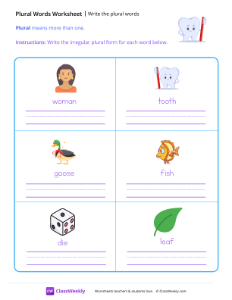 Plural means more than one. Worksheet instructions: Write the irregular plural form for each word below.