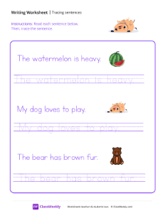 Worksheet instructions: Read each sentence. Then, trace the sentence.