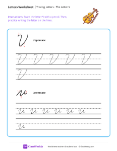 Worksheet instructions: Trace the letter V with a pencil. Then, practice writing the letter on the lines.