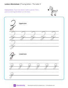 Worksheet instructions: Trace the letter Z with a pencil. Then, practice writing the letter on the lines.