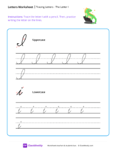 Worksheet instructions: Trace the letter I with a pencil. Then, practice writing the letter on the lines.