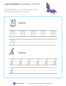 Worksheet instructions: Trace the letter B with a pencil. Then, practice writing the letter on the lines.