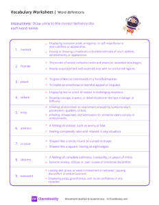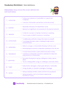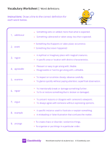 Worksheet instructions: Draw a line to the correct definition for each word.