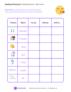 Spelling Practice & Sight Words - Kiss