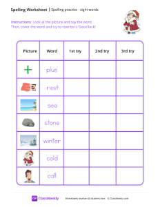 Spelling Practice & Sight Words - Sun
