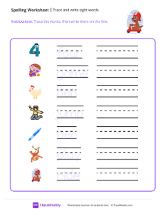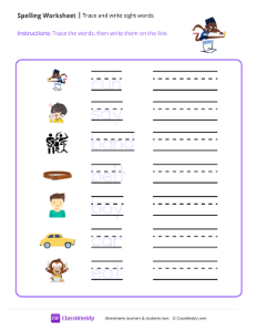 Worksheet instructions: Trace the words, then write them on the line.
