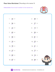 In this worksheet, students round two-digit numbers to the nearest ten. Numbers ending in 5 should be rounded up. Worksheet instructions: Round each number to the nearest ten.