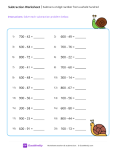 Subtract a 2-digit number from a whole hundred - Snail