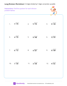 This worksheet helps students practice long division by dividing 2-digit numbers by 1-digit numbers (answer may have remainders). Worksheet instructions: Find the quotient for each division problem