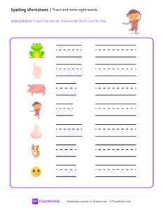 Worksheet instructions: Trace the words, then write them on the line.