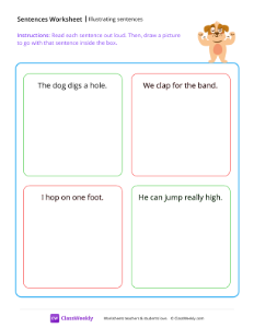 This illustrating sentences worksheet helps children connect written words with their meaning. For example, "The fish can swim." Students draw what they read to deepen understanding. Worksheet instructions: Read each sentence out loud. Then, draw a picture to go with that sentence inside the box.
