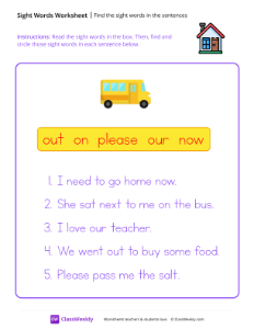 Find the sight words in the sentences - School Bus