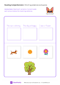 Worksheet instructions: Read each sentence. Then, cut and paste the pictures below the matching sentences.