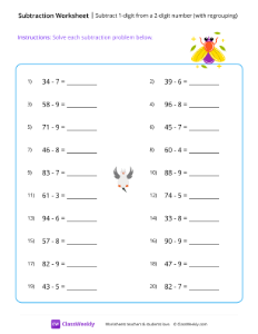 In this subtraction worksheet, students subtract 1-digit numbers from 2-digit numbers (with regrouping). Worksheet instructions: Solve each subtraction problem.