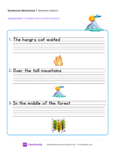 This sentence starter worksheet encourages students to express their creativity by adding their own endings to sentence starters. Worksheet instructions: Complete each of the following sentences.